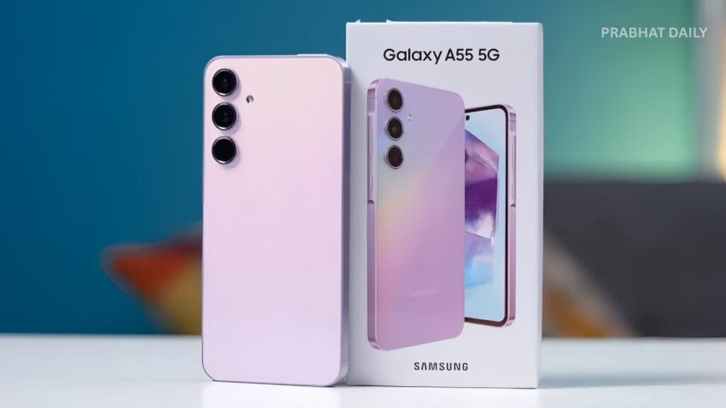 Galaxy A55 5G : Samsung ने मिड-रेंज प्रीमियम स्मार्टफोन मार्केट में फिर से धमाका कर दिया है अपने नए Samsung Galaxy A55 5G के साथ। शानदार डिस्प्ले, दमदार कैमरा और लंबे समय तक सॉफ्टवेयर सपोर्ट के वादे के साथ यह फोन उन लोगों के लिए परफेक्ट है जो भरोसेमंद और स्टाइलिश स्मार्टफोन चाहते हैं। इसका डिज़ाइन प्रीमियम है और इसमें ऐसे फीचर्स दिए गए हैं जो आमतौर पर महंगे फोन्स में मिलते हैं। चलिए जानते हैं कि आखिर यह फोन क्यों बाकी स्मार्टफोन्स को कड़ी टक्कर दे रहा है।